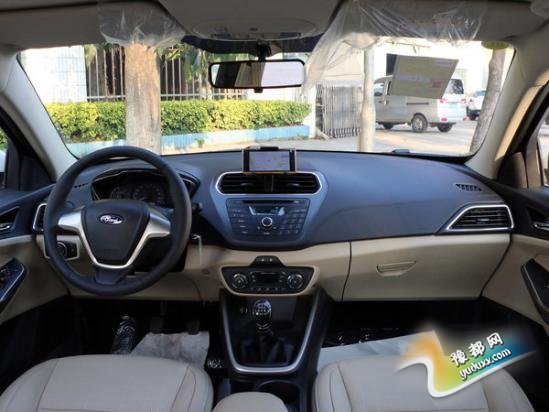 内饰方面:福睿斯的内饰整体配色运用棕色与黑色组成的双色设计,其整体样式设计较为精简。新车配备了三辐式多功能方向盘,前方仪表盘造型简洁明亮,两侧分别为转速表与燃油表。中控台部分,其中部空调出风口与多媒体系统组成与前脸造型类似的六边形造型,底部则为空调控制区域。另外,我们还可以看到,福睿斯还配备了导航支架,但并不提供导航装置。