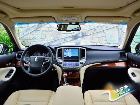 内饰方面:新一代皇冠的内饰做工精细且极具质感,新车中控台在驾乘人员最常触摸的地方都采用了皮质材料覆盖,显得很有质感。另外新车中控台配备了由8英寸和5英寸液晶屏组成的双屏多媒体系统,这让中控台的按键很少,也使得新车的内饰看起来很有科技感。