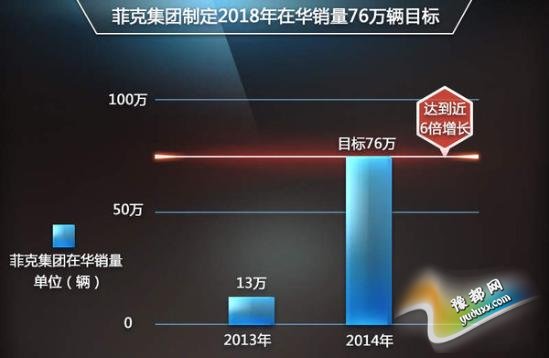 在菲克集团2014年5月发布的新五年发展规划中,中国市场毫无疑问地被列为发展重点。菲克集团亚太区总经理兼Jeep品牌亚太区负责人柯安哲先生表示:“新的国产计划将有利于加速我们的销量及市场占有率的增长,从而实现菲克集团2018年中国市场销量达到76万辆的目标。” 2013年菲克集团在华销量仅为13万辆,在2014年仍没有突破20万辆。到2016年年底,广汽菲亚特将有3款Jeep品牌的新产品陆续投产,伴随着国产车入门门槛以及相关零部件成本的降低,Jeep品牌无疑将成为尖兵推动菲克集团整体销量的提升。