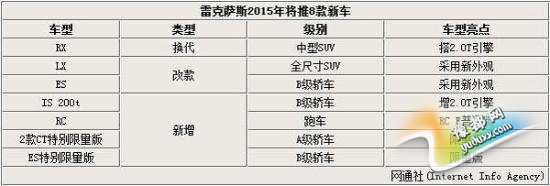 《雷克萨斯发力2015年 SUV等8新车将上市》由河南新闻网-豫都网提供,转载请注明出处:http://auto.yuduxx.com/news/136766.html,谢谢合作!