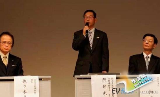日本国土交通省京都运输支局局长阪部光雄在比亚迪K9运营启动仪式上发言