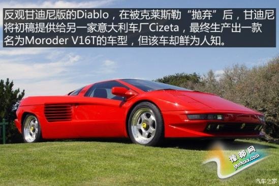 半个世纪前的一天,“拖拉机大王”费鲁吉奥·兰博基尼找到恩佐·法拉利,向恩佐抱怨自己的法拉利250跑车出了故障,并指出该车存在一些不合理的设计,但恩佐却不屑一顾,认为一个造农用车的根本没资格对自己指手画脚。不甘示弱的费鲁吉奥决定挑战恩佐,于是在距离法拉利诞生地仅15公里的地方创立了兰博基尼。没过多久,来自博通工作室的Marcello Gandini甘迪尼(最初的概念车由乔治亚罗设计)便为兰博基尼设计出了世界上第一辆超级跑车Miura(穆拉),随即轰动整个车坛。Miura(穆拉)的继任者Countach(康塔什)同样由甘迪尼设计,不过,在设计Countach的后继车型时,甘迪尼却与克莱斯勒设计团队(克莱斯勒1987年收购兰博基尼,1994年将其出售)产生了巨大分歧,最终,脍炙人口的克莱斯勒版Diablo成为一代经典,而甘迪尼版Diablo却被淹没在历史长河中。