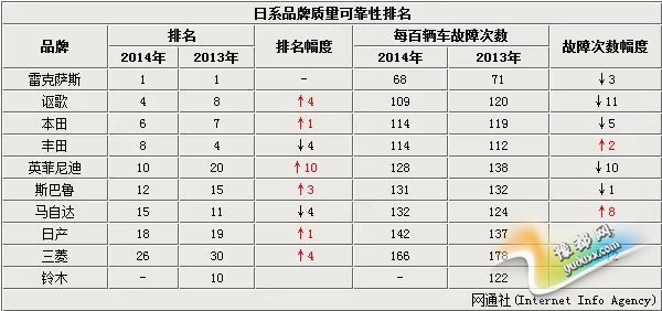 《日系10大汽车品牌2014年新车质量排名》由河南新闻网-豫都网提供,转载请注明出处:http://auto.yuduxx.com/news/166315.html,谢谢合作!