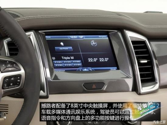 在车身外观上强调的“水平一体化”的设计理念同样延伸到了福特撼路者的车厢内部,横贯中控面板和仪表板的线条,勾勒出了位于中控台中央的车载娱乐系统区域,同时为前排乘客营造出了一种宽敞和功能丰富的驾乘空间。