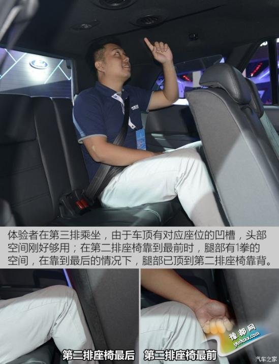 另外,其配备的三排七座设计,进一步提高了实用性。通过实际体验,身高175cm的编辑坐在第三排由于其顶部设计有凸起,因此头部刚刚好,而第二排座椅调到最前时,腿部有一拳的空间。