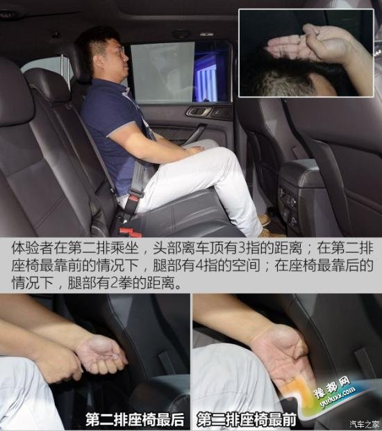 目前,官方尚未公布新款探险者的车身尺寸,但编辑推测与老款相比预计变化不大。作为参考,老款车型长宽高依次为5006/2005/1743mm,轴距2860mm。我们曾经体验过这款车的同事称,182cm的体验者做到第三排后,头部为一指,腿部无多余空间。