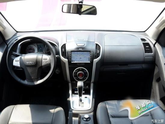 车辆内部,五十铃MU-X的内饰设计比较简约、质朴,整体与D-MAX非常相近,但中控台配有大尺寸液晶屏幕,空调控制区域也采用了圆形设计。配置方面,该车装有真皮座椅、前排7.1寸导航显示屏、后排10.2寸显示屏、驾驶席6向调节电动座椅、前排座椅加热、无钥匙进入、一键启动、自动空调、定速巡航、倒车影像等。