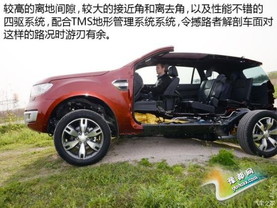 福特撼路者是基于福特Ranger皮卡平台打造,非承载式车身设计。这种车型的底盘带有大梁结构,不论是刚性还是承载能力、拖拽能力都胜过采用承载式车身的城市SUV一筹。而四驱系统方面,撼路者装配的是适时四驱系统,具备低速扭矩放大功能;后桥差速器可进行电子锁止,可在恶劣的路况下协助脱困。