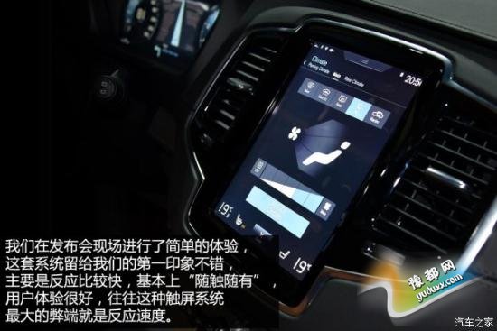 当然,除了设计上的焕然一新,全新XC90在配置装备上也应用了沃尔沃最新的技术,比如全液晶仪表盘、9英寸触摸屏、平视显示器、Sensus人机交互系统、由一个1400瓦放大器和19个扬声器组成的Bowers&Wilkins音响系统、主动式空气悬架。另外,在安全配置方面,该车装有路面偏离保护方案、交叉路口自动刹车技术,以及360°全景摄像头、盲点信息系统、倒车车侧警示系统、排队辅助功能等。