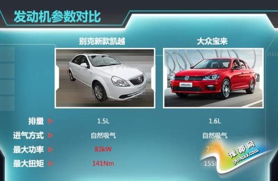 紧凑级家轿一直是各大厂商的必争之地,大众宝来是凯越的竞争对车型之一。新款凯越将继续使用1.5L汽油发动机,最大功率为83kW,峰值扭矩为141Nm。与大众宝来搭载的1.6L(最大功率77kW,最大扭矩155Nm)发动机相比,新款凯越所搭载引擎相比宝来1.6L引擎在最大功率方面存在优势。传动系统方面,与发动机匹配的是5速手动变速箱。