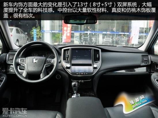 内饰方面,新车采用了与海外新一代皇冠相同的设计风格,中控台配备有大尺寸液晶显示屏,空调控制区域运用了触摸屏设计,仪表盘采用双圆仪表配合液晶显示屏的组合搭配。
