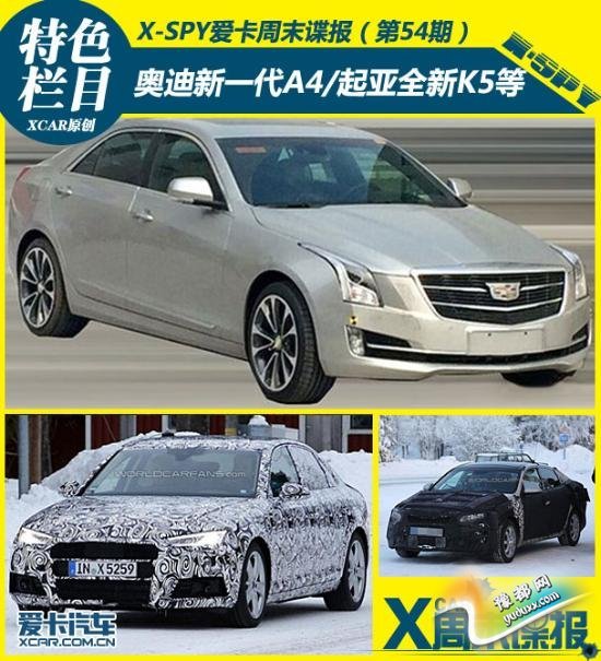 又到了本周的谍报汇总时间了,本期周末谍报也是春节前的最后一期,作为压轴的一期,同样有很多重磅车型被相继曝光。首先,在豪华品牌方面,宝马新一代5系/7系、奥迪全新一代A4/TT、凯迪拉克新款ATS-L、国产路虎发现神行 等车型被再次曝光。另外,起亚全新K5、东风日产全新逍客、北京现代第九代索纳塔2.0L车型、福特锐界运动版、大众新速腾1.4TSI 等大众化车型也在网络中曝光。在自主品牌方面有新款荣威550、哈弗H2自动挡、广汽传祺GA6 1.5T车型、绅宝D50 1.5T车型 等。下面就跟我们一期回顾本周内曝光的新车谍照。