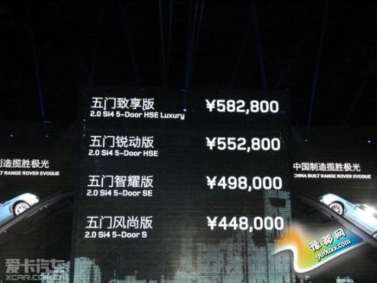 2015年2月1日,奇瑞捷豹路虎揽胜极光正式上市,新车上市共推出四款车型,售价区间44.8-58.28万元 。奇瑞捷豹路虎揽胜极光虽然是我们常规理解上的国产极光,但实际和进口版极光无论在外形、配置、还是性能上,都是出自同门。