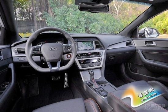 第九代索纳塔在内饰上则是与现款彻底决裂了,基本找不到现款车型的任何影子。1.6T车型采用了平底的三幅多功能运动方向盘并配有金属装饰,油门踏板换为金属材质并配有橡胶防滑颗粒;2.4L车型则为普通的多功能方向盘。