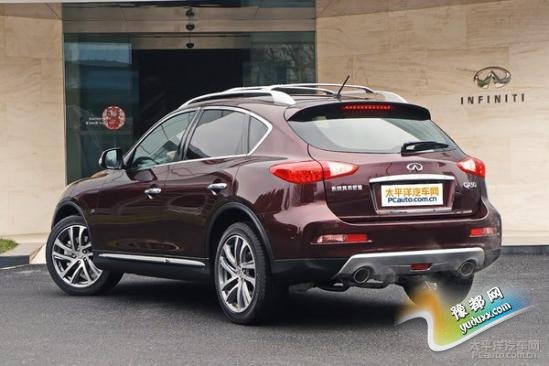 东风英菲尼迪QX50的外观相信大家不会觉得陌生。最早英菲尼迪进口渠道引进的EX正是QX50的前身,目前也有QX50进口版车型在售。国产后的QX50外观有小幅度调整,最大的区别在前下保险杠处新增了弓形的镀铬饰条,此外还在雾灯位置加入了LED日间行车灯。当然在整体上最引人注目的莫过于加长了80mm的轴距,使其轴距达到2880mm,长度均领先于宝马X3、奥迪Q5等对手。