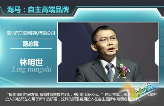 后续多达10款新车的投放计划,必然伴随着巨大的研发费用。对此,林明世还表示:“每年我们的研发费用超过销售额的5%,费用达到6亿元。”由此推算,未来五年海马汽车将投入30亿元左右用于新车的研发,这样的研发费用投入在自主品牌中可谓名列前茅。
