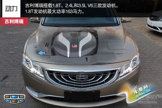 动力方面: 据悉吉利博瑞将搭载1.8T、2.4L和3.5L V6三款发动机。1.8T发动机最大功率163马力;2.4L发动机最大功率162马力;3.5L V6发动机最大功率245马力,传动匹配的是6速手自一体变速箱。