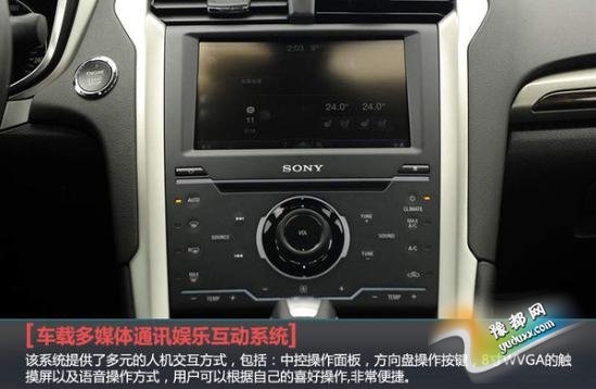 车载多媒体通讯娱乐互动系统(SYNC和MyFordTouchTM)也是长安福特最新的科技,新蒙迪欧是首款装备的国产车型。该系统提供了多元的人机交互方式,包括:中控操作面板,方向盘操作按键,8寸WVGA的触摸屏以及语音操作方式,用户可以根据自己的喜好,自由选择中文或者英文的触屏操控界面,操作非常便捷。
