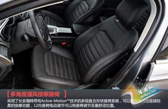 在体验科技给你带来驾车乐趣的同时,新蒙迪欧还将科技最大程度地运用到座椅中,提升驾乘人员的乘坐舒性。新蒙迪欧顶配车型搭配多角度通风按摩座椅,采用了福特带有Active Motion技术的多段复合形状座椅(Multi-Contour Seat)系统,可以提供全方位连续轻柔的按摩功能,12向座椅电动调节可将座椅调节至最舒适的位置。如此高档次的按摩座椅通常也只有在豪华车甚至更高级别的车型中才会配备,足见新蒙迪欧配置高级而充满人性化。
