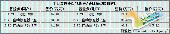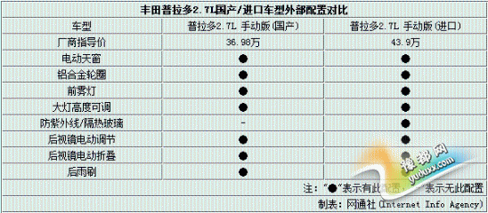 一汽丰田今年3月已正式将此前采用进口方式的普拉多2.7L车型进行国产,并推出3款车型,售价区间为36.98-42.98万元。相比进口车型而言,普拉多2.7L国产车型全系价格区间均大幅下探。网通社对比了普拉多2.7L的国产和进口车型入门版后发现,国产普拉多2.7L入门版较进口入门版车型价格降低6.82万元,但在配置方面变化并不明显,同时新车车身重量还减轻40kg,油耗因此有望降低。