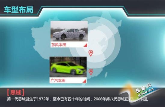 现款第九代思域在位于武汉的东风本田汽车有限公司生产,搭载1.8L和2.4L两款自然吸气发动机。第十代新思域将于年底继续在东风本田投产,搭载1.5T直喷增压发动机。基于新思域平台研发的三厢A级车将在广汽本田投产,新车上市后,将会与东风本田新思域合力冲击国内三厢A级车市场。