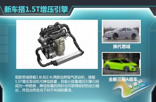 本田曾在中国媒体大会上发布专为中国市场研发的1.0T、1.5T和2.0T三款涡轮增压发动机,换代思域将率先搭载1.5T引擎,据本田内部人士表示,1.5T增压发动机动力输出强劲,可媲美本田2.4L自然吸气发动机。而广汽本田全新三厢A级车与新思域同平台,那么也极有可能搭载1.5T真喷增压发动机。