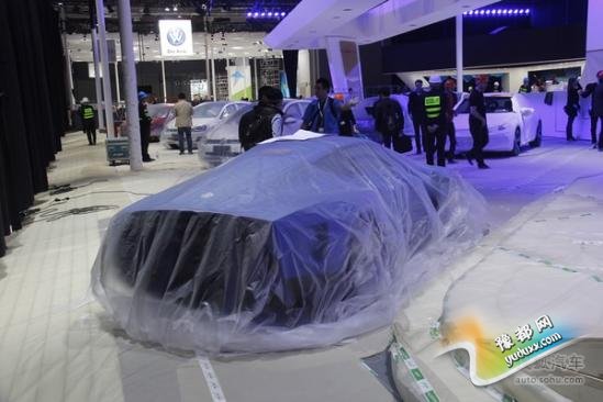 布展现场,大众XL Sport被一层塑料膜所包裹。依稀可以看出,新车基于XL1重新设计了部分部件,新车外观设计融入更多跑车的设计元素,同时车身更加低矮。