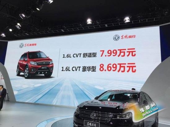 2015年4月20日上海车展,东风风行景逸 XV正式上市,新车搭载CVT变速箱,售价为:1.6L CVT 舒适型 7.99万元 ,1.6L CVT 豪华型 8.69万元 。