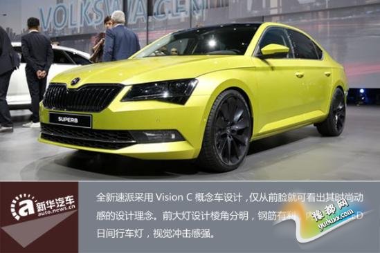 全新速派采用Vision C概念车设计,仅从前脸就可看出其时尚动感的设计理念。前大灯设计棱角分明,钢筋有利,内部加入LED日间行车灯,视觉冲击感强。
