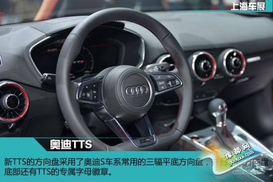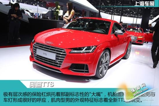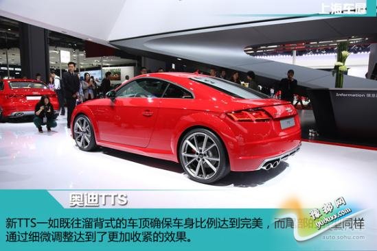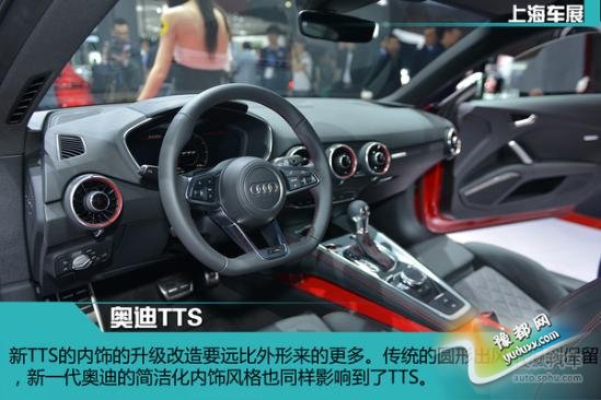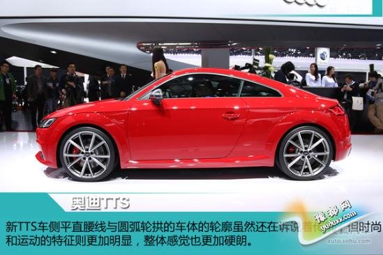 同样在奥迪展台上,新一代的奥迪TTS也以全新面貌登场,这款性能卓越的小跑车将在8月份上市。新一代的TTS带有着浓郁的新一代奥迪家族特征,线条分明棱角突出自不用多说,而更令人欲罢不能的是它俨然有了一幅小号R8的感觉。同时他还换装了第三代EA888 2.0T发动机,在性能上更为强劲。而TTS在科技感上也更加突出了奥迪一贯引领科技的水准,和同级别的小跑车相比他在四驱系统的应用还有配置上都有着不小的优势。