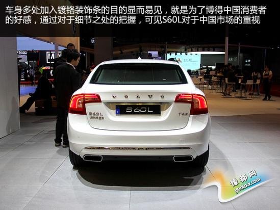 沃尔沃S60L插电混合动力车型的外观与普通版S60L没有太大区别,新车前进气格栅增加了金属镀铬装饰,前大灯延续了常规版本的造型。另外,车身多处加入镀铬装饰条,以博得中国消费者好感,同时尾灯也与普通版区别不大,新车只是在尾部加入了I字样以示区别。新车采用了18寸轮圈,轮胎尺寸为235/45 R18,全新的轮圈设计更显运动,与整车造型相呼应。